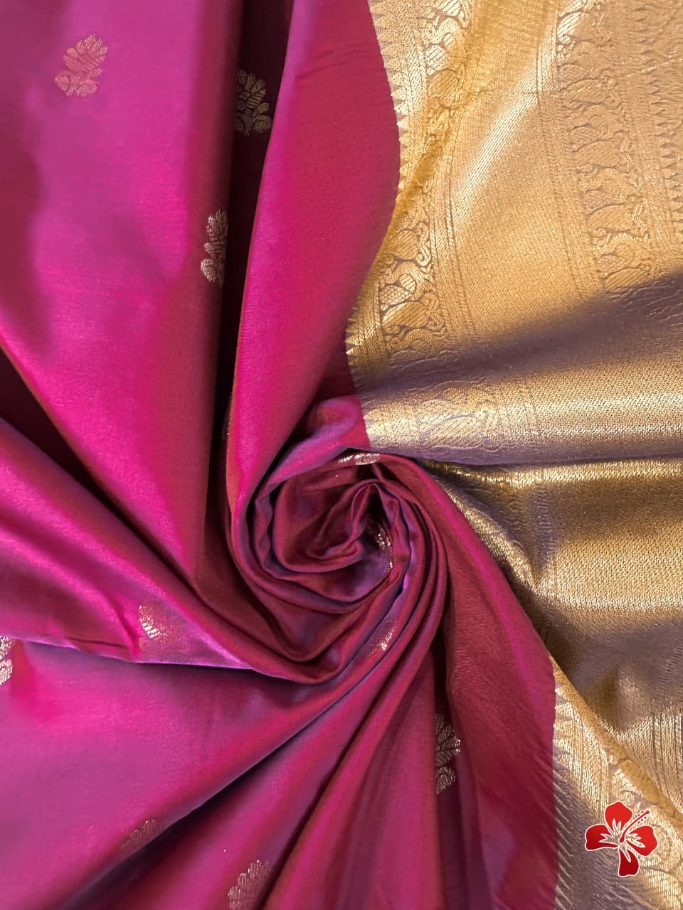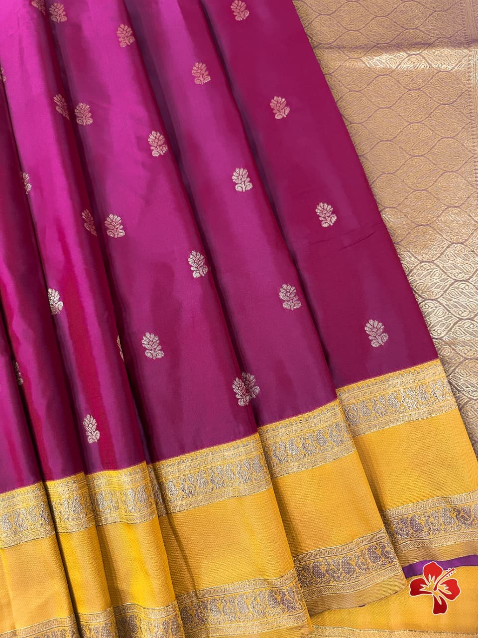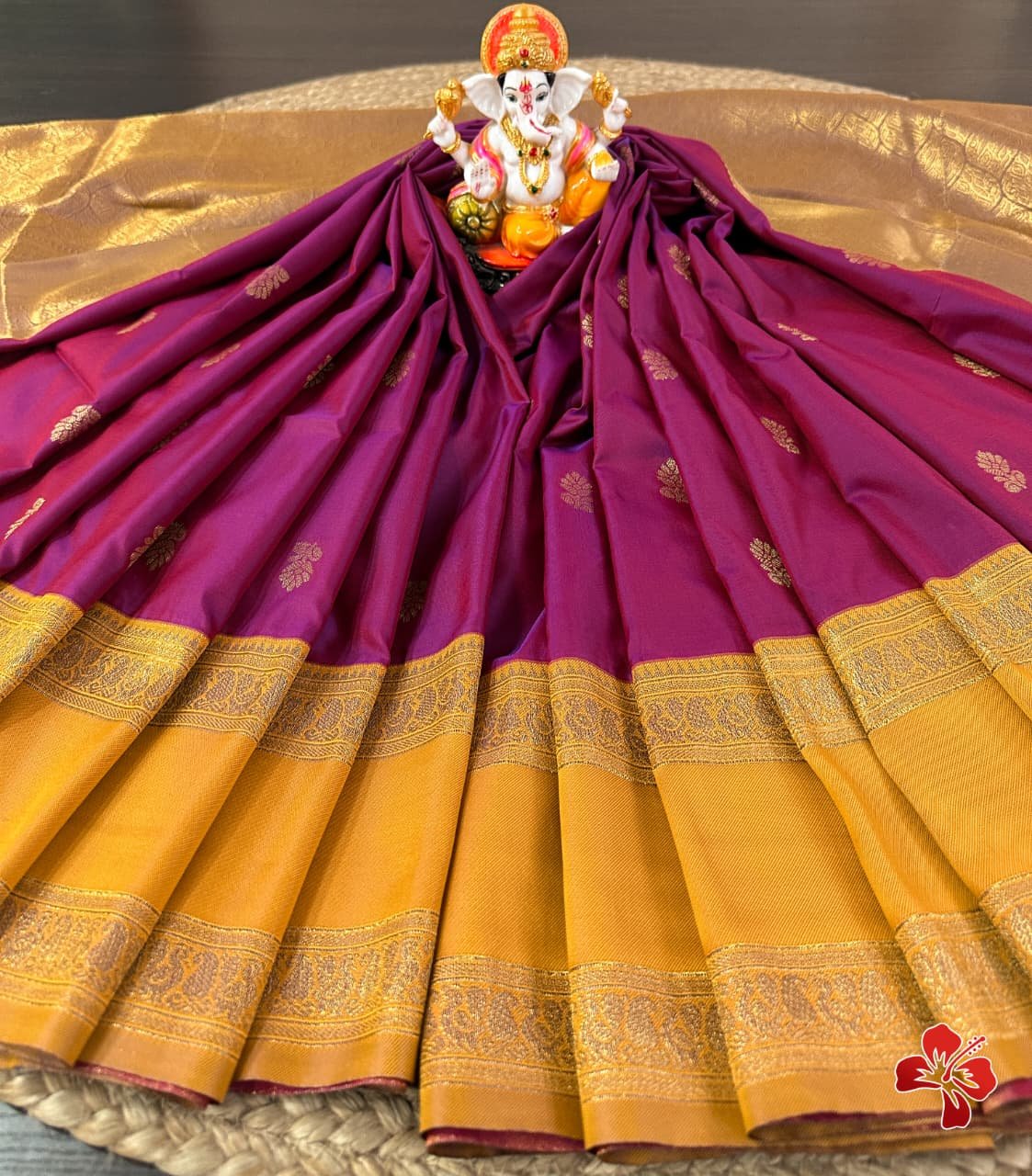 Having all over *traditional butties in the body with a contrast woven border and grand woven pallu with exclusive tassels*🧶.