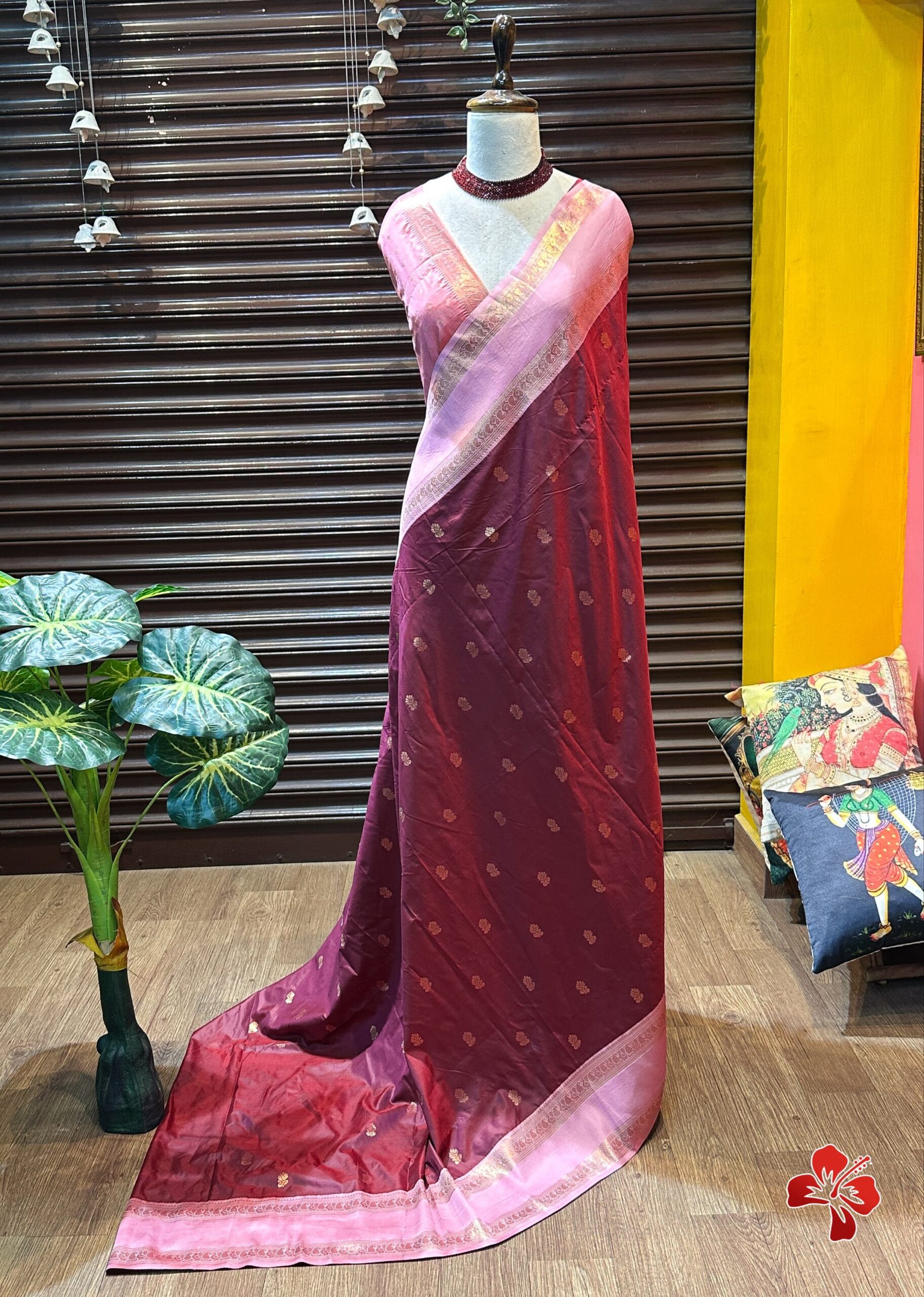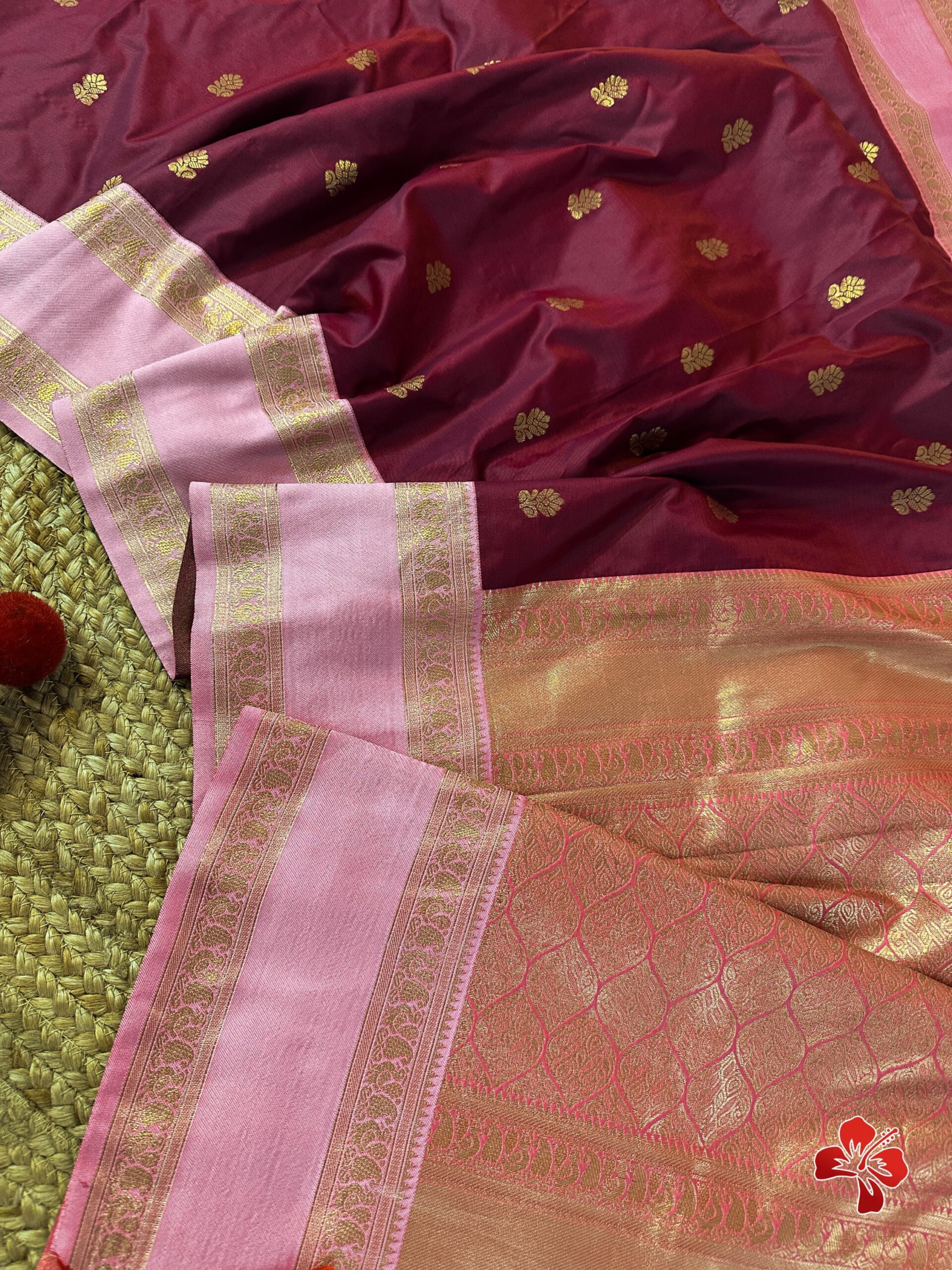 Having all over *traditional butties in the body with contrast woven border and grand woven pallu with exclusive tassels*🧶