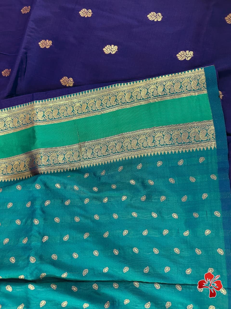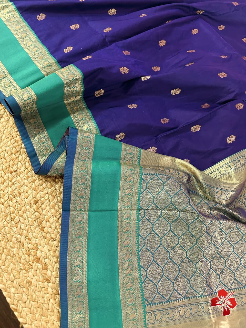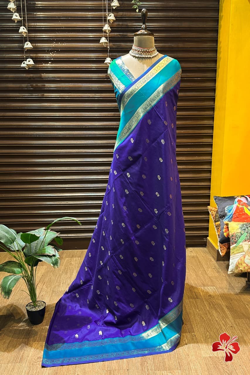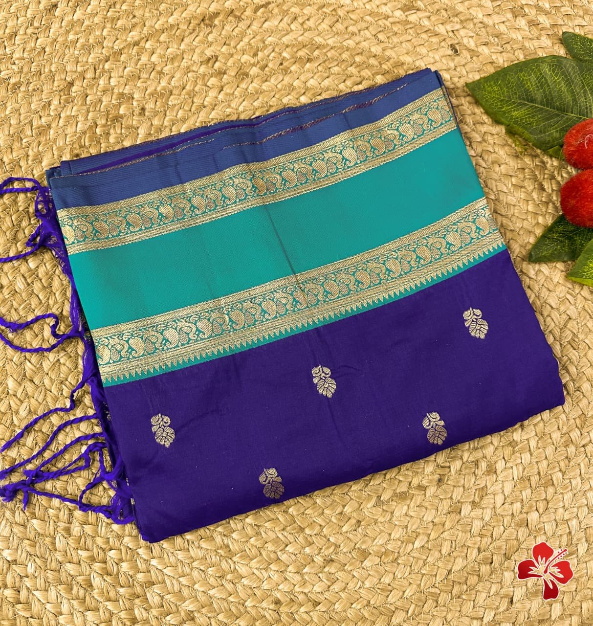 Having all-over traditional butties in the body with a contrast woven border and a grand woven pallu with exclusive tassels