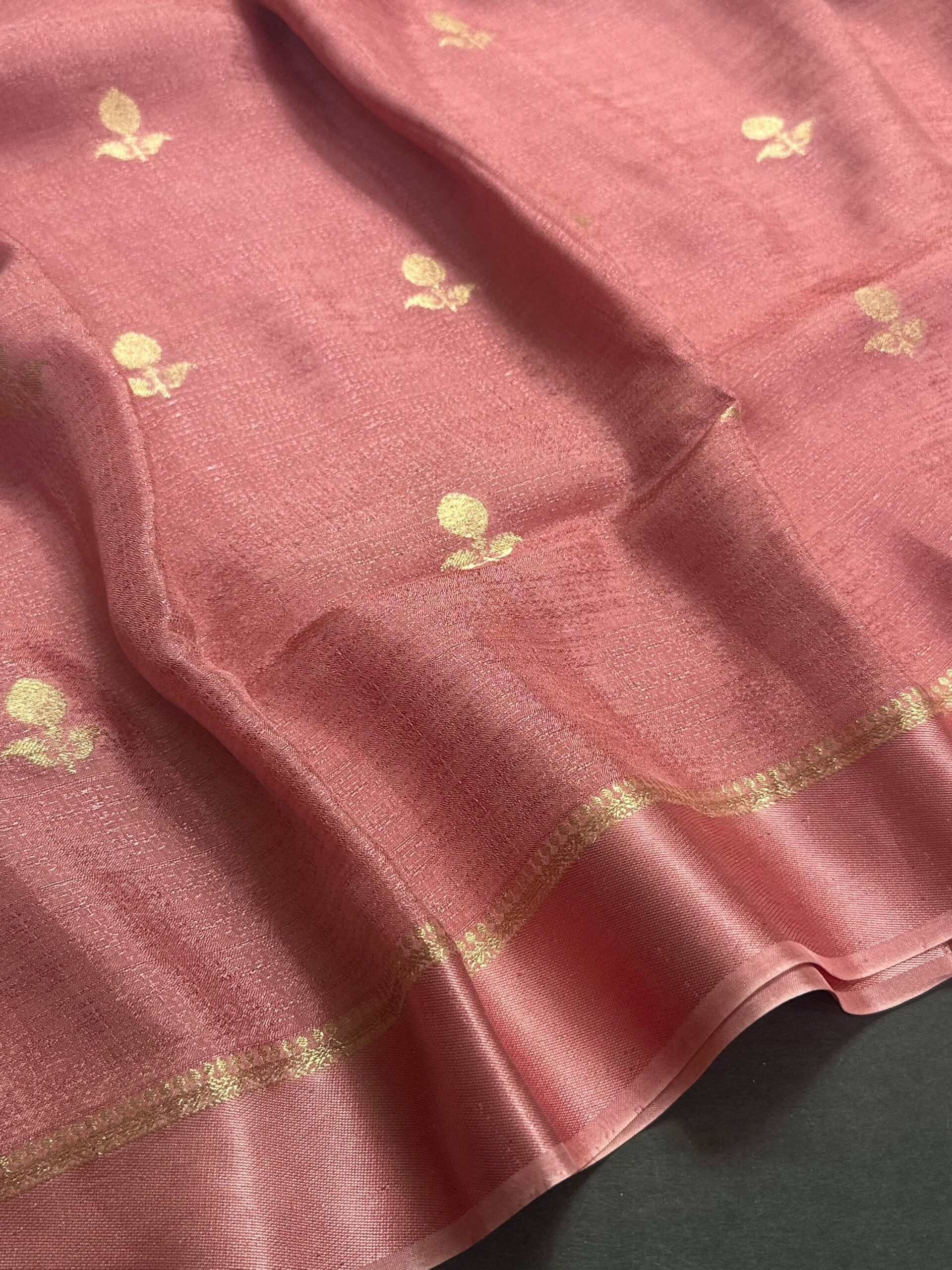 Pure soft Viscose Khadi silk fabric with satin border on both sides, jacquard leaf figure design all over, and a running blouse.