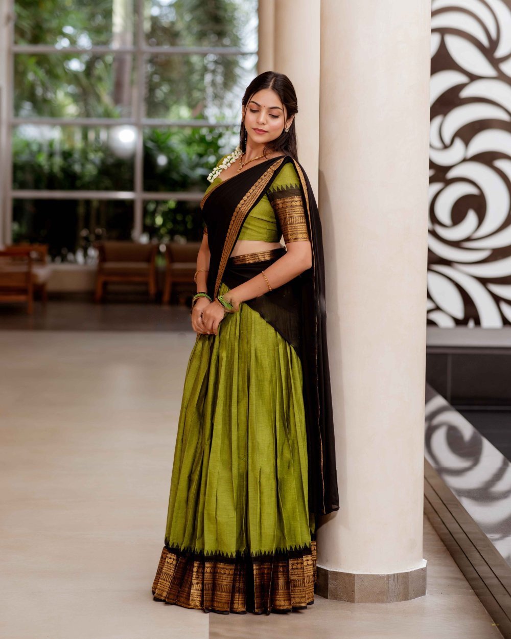 CRAFTED WITH LOVE, ADORNED WITH HERITAGE : THE SOUTH-STYLE KANJIVARAM SILK LEHENGA IS MORE THAN JUST ATTIRE; IT’S A PIECE OF ART THAT ENCAPSULATES THE ESSENCE OF SOUTH INDIAN CULTURE 🪸