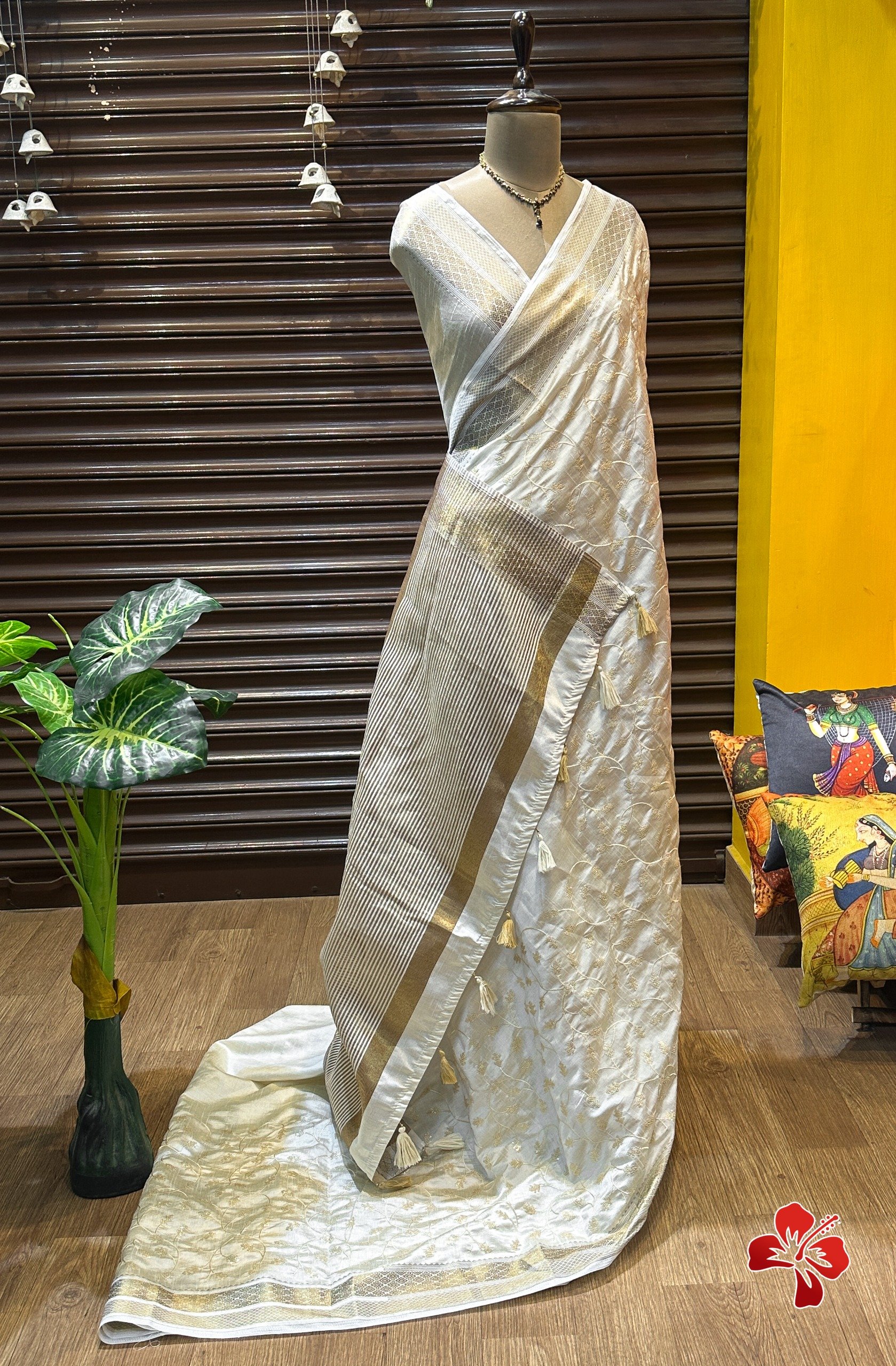 Having woven border & woven stripped pallu with tassels 🧶👗