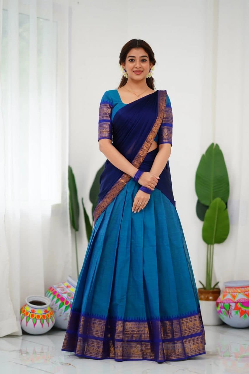 Crafted with love, adorned with heritage : The South-style Kanjivaram silk lehenga is more than just attire; it’s a piece of art that encapsulates the essence of South Indian culture 🪸