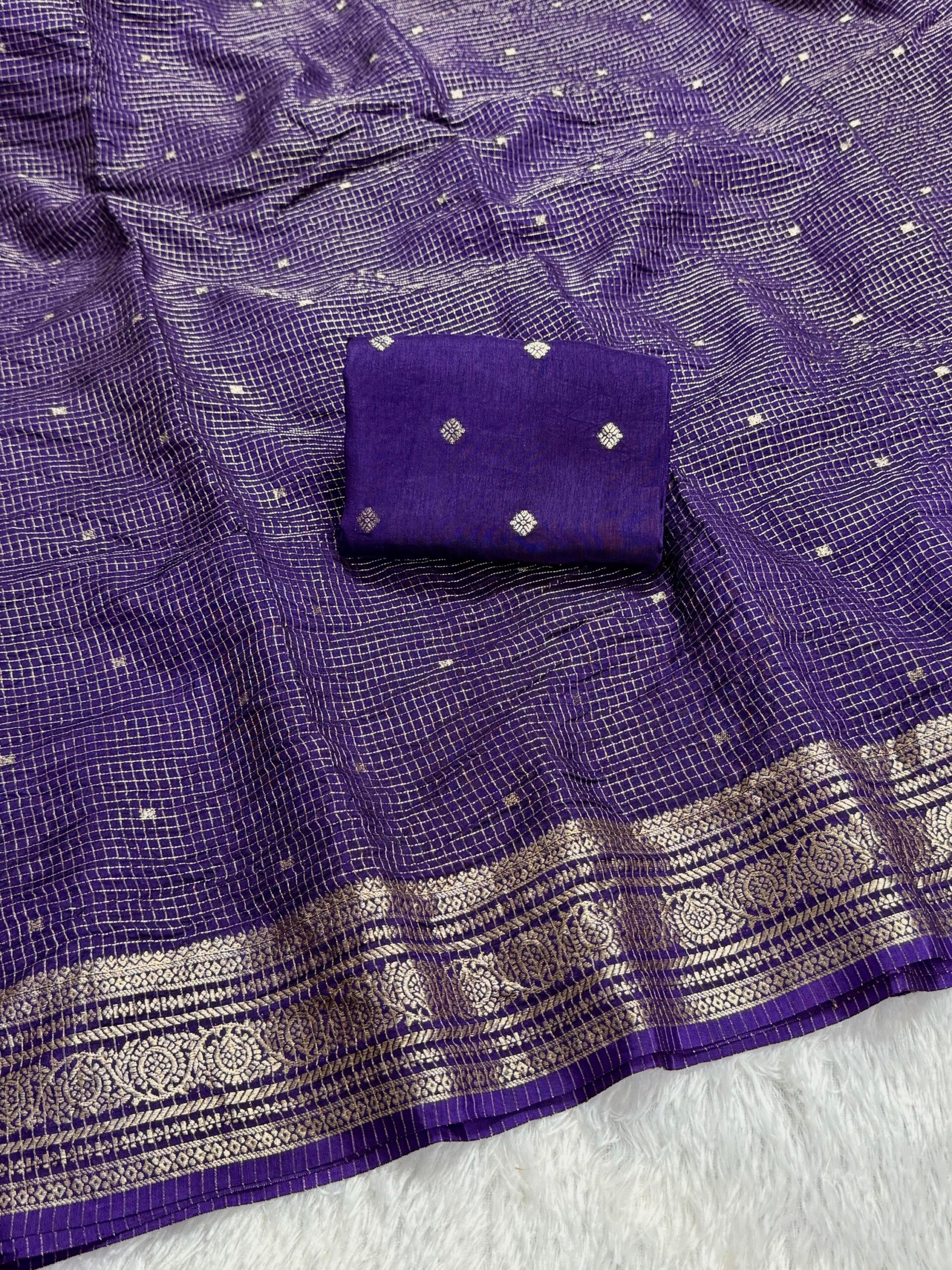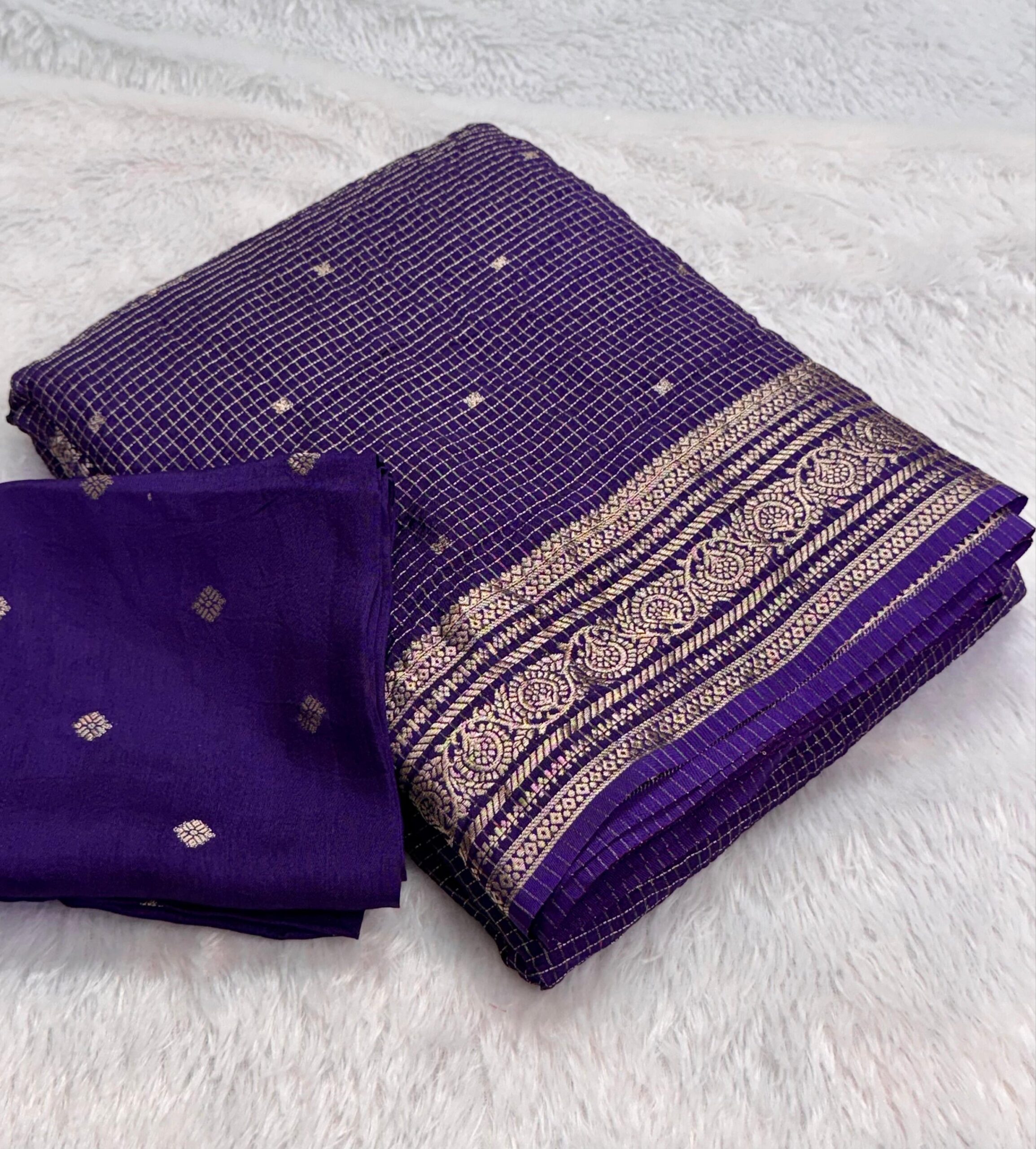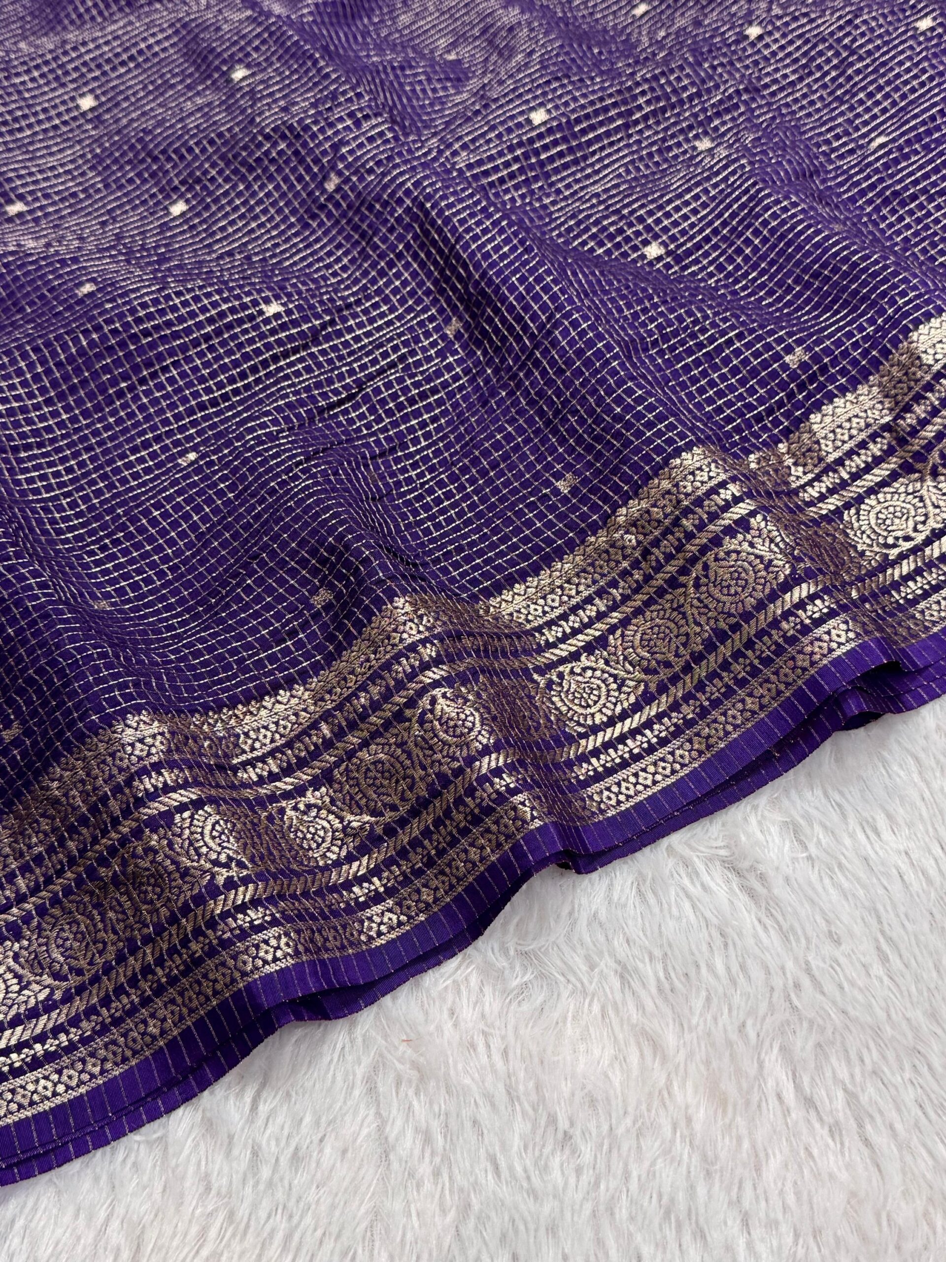 Pure viscose Russian chex saree with zari butti all over and zari border on both sides