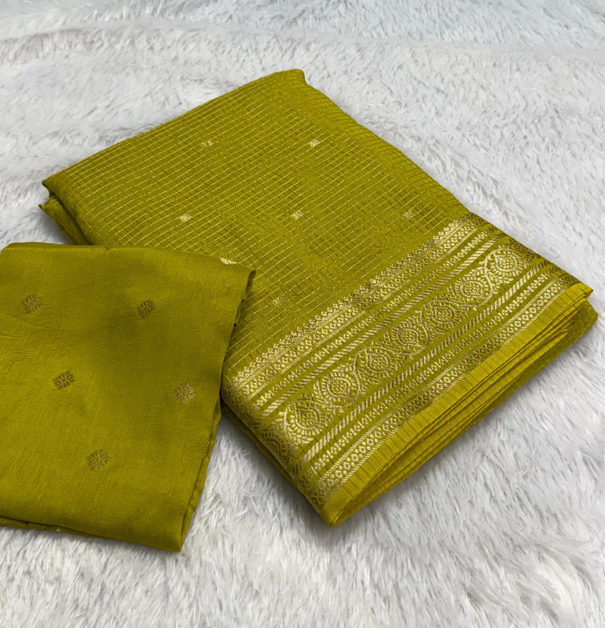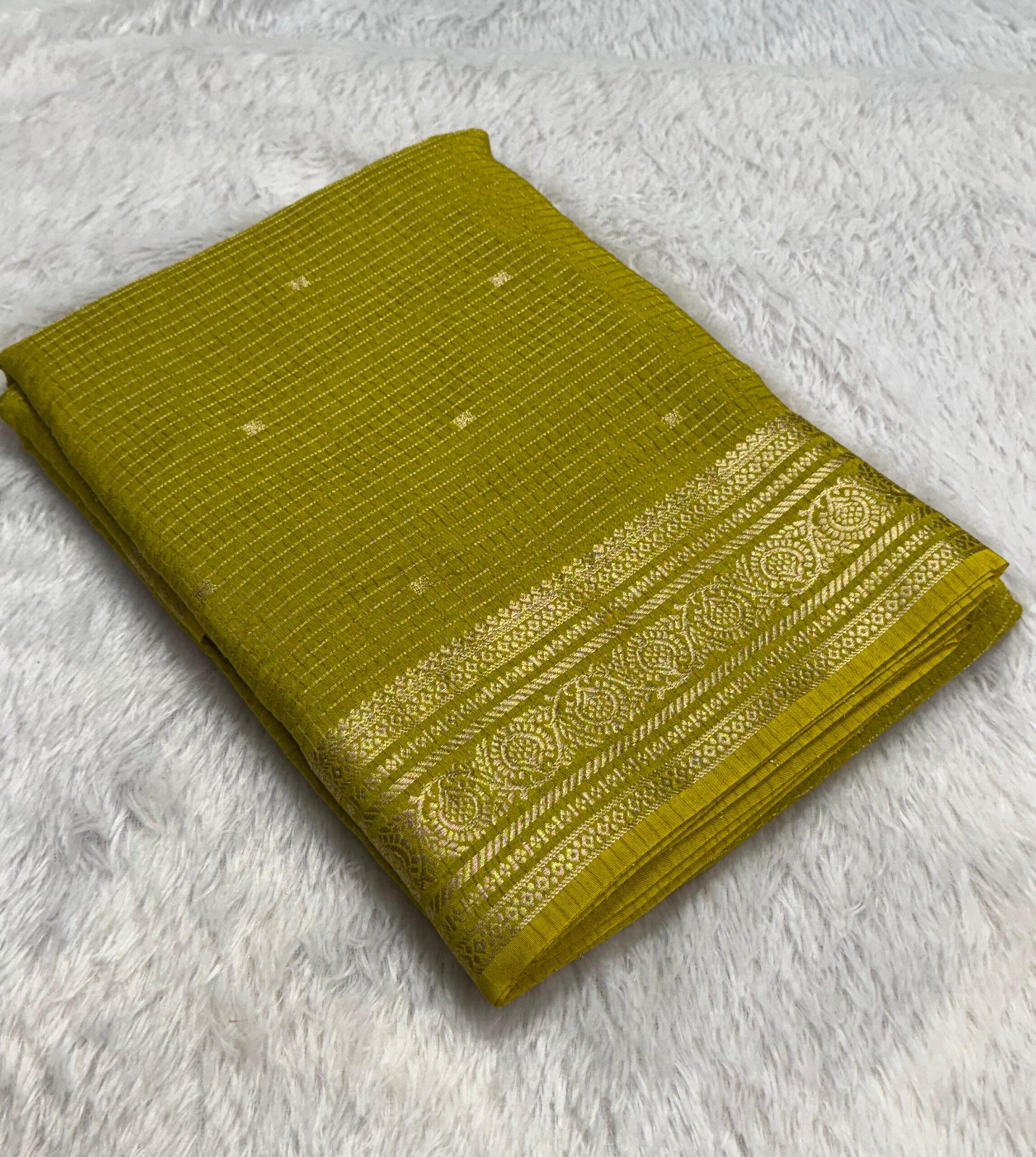 Pure viscose russian chex saree with zari butti all over and zari border both sides