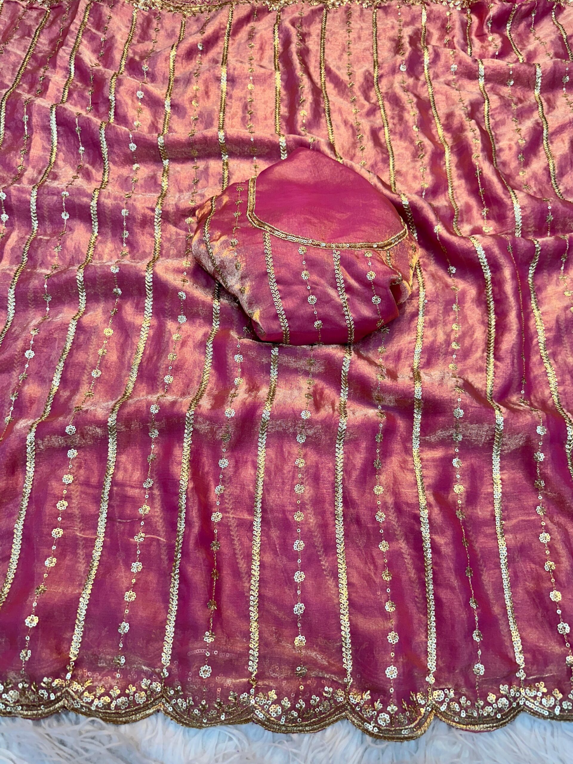 Quality: Soft Shiny Pixel Crush Space Silk Fabric with Designer Cutdana & Sequence Embroidery Work