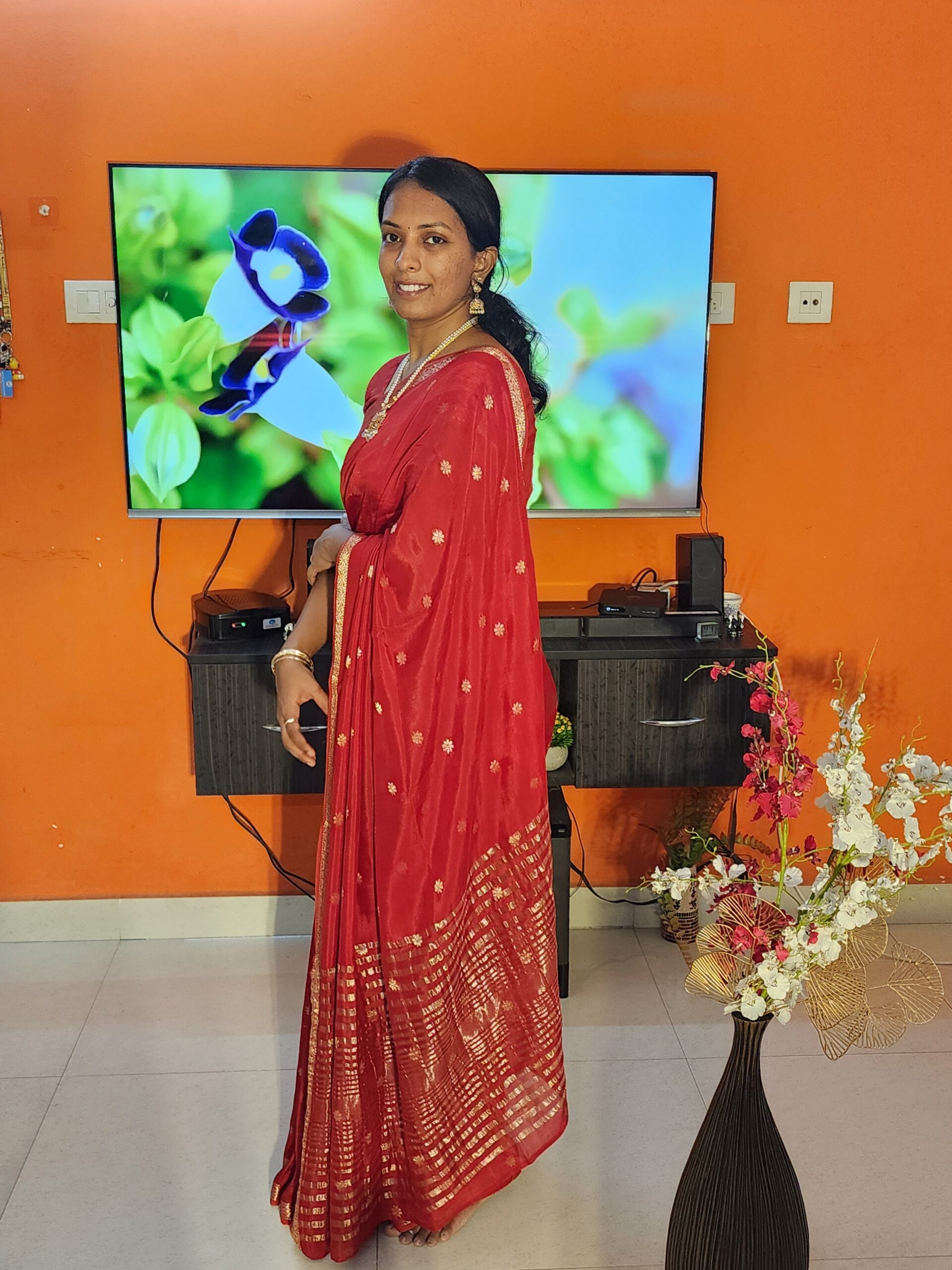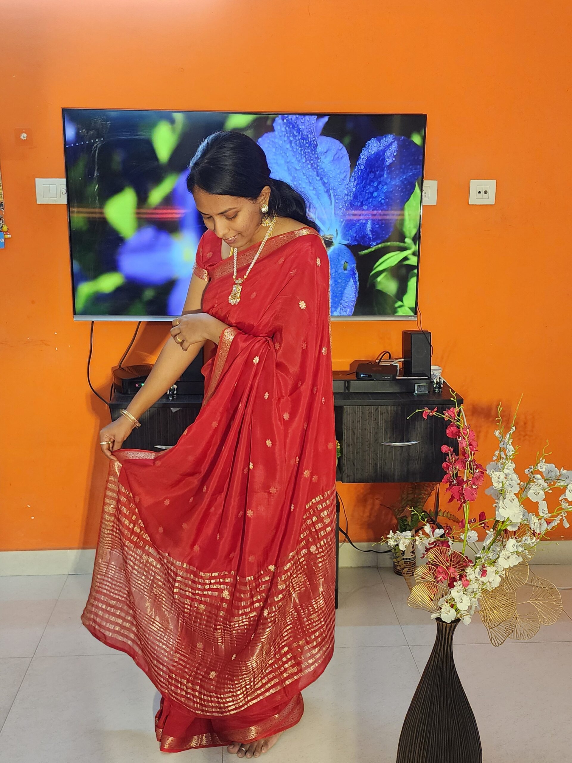 Pure viscose weaving crepe silk saree with butti weaving and zari lining pallu