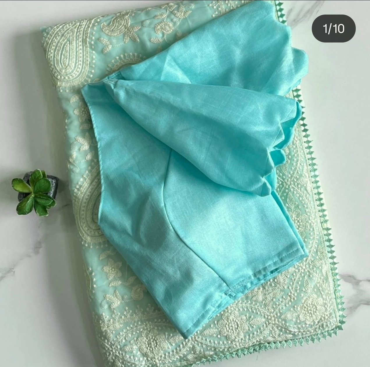 Teamed with stitched blouse piece as shown