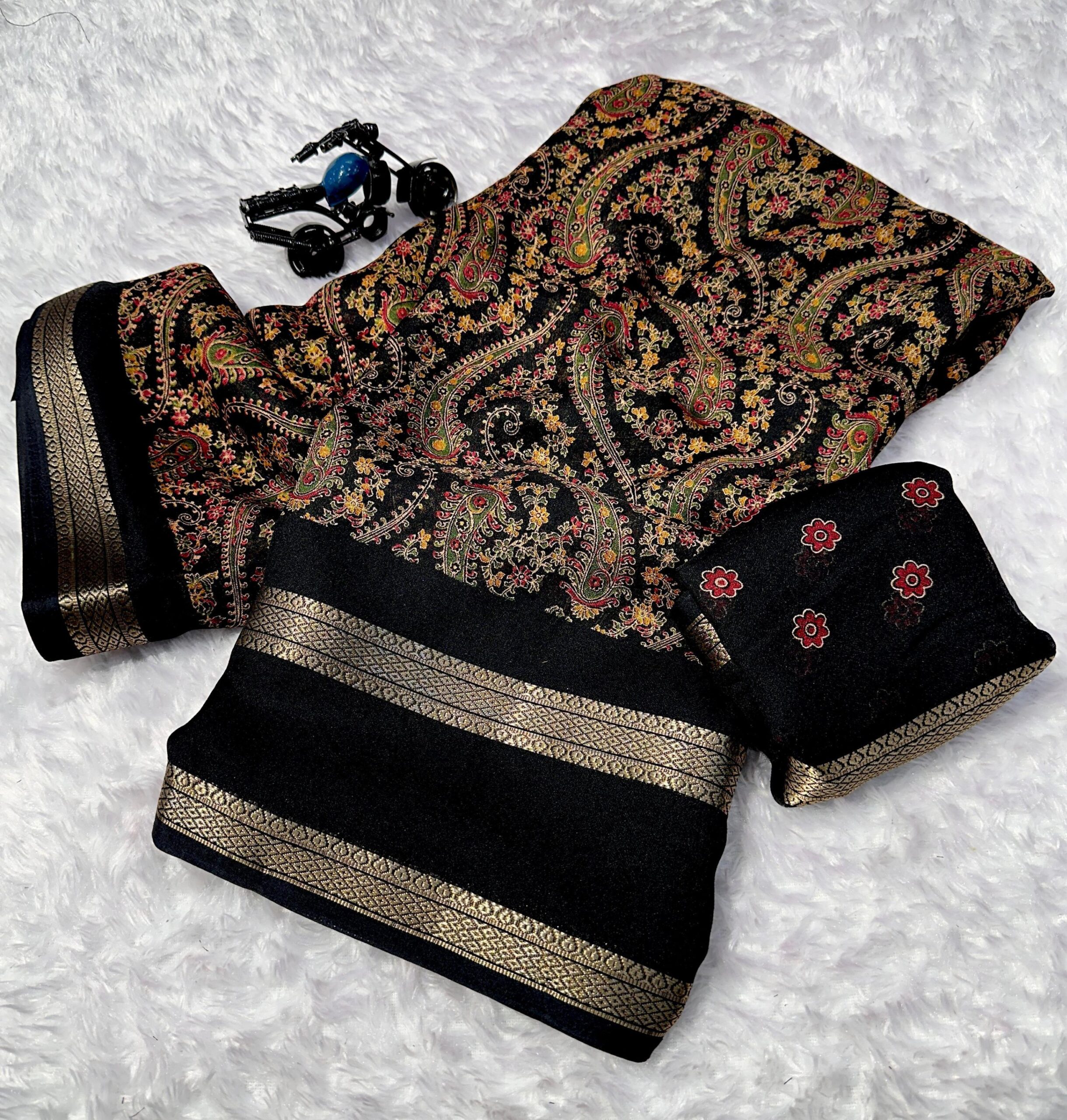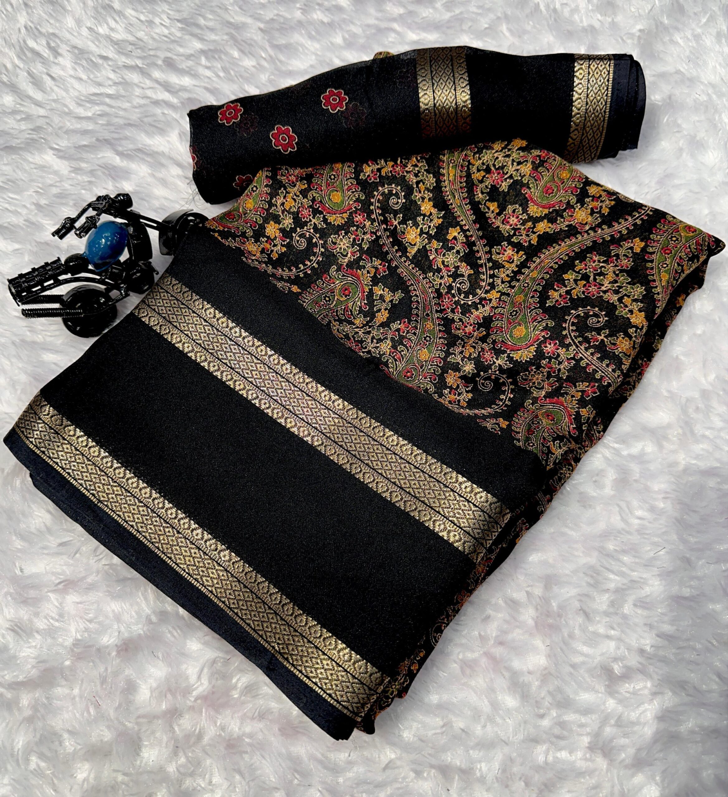 Soft georgette saree with beautiful kashmiri mango print and bentex border concept