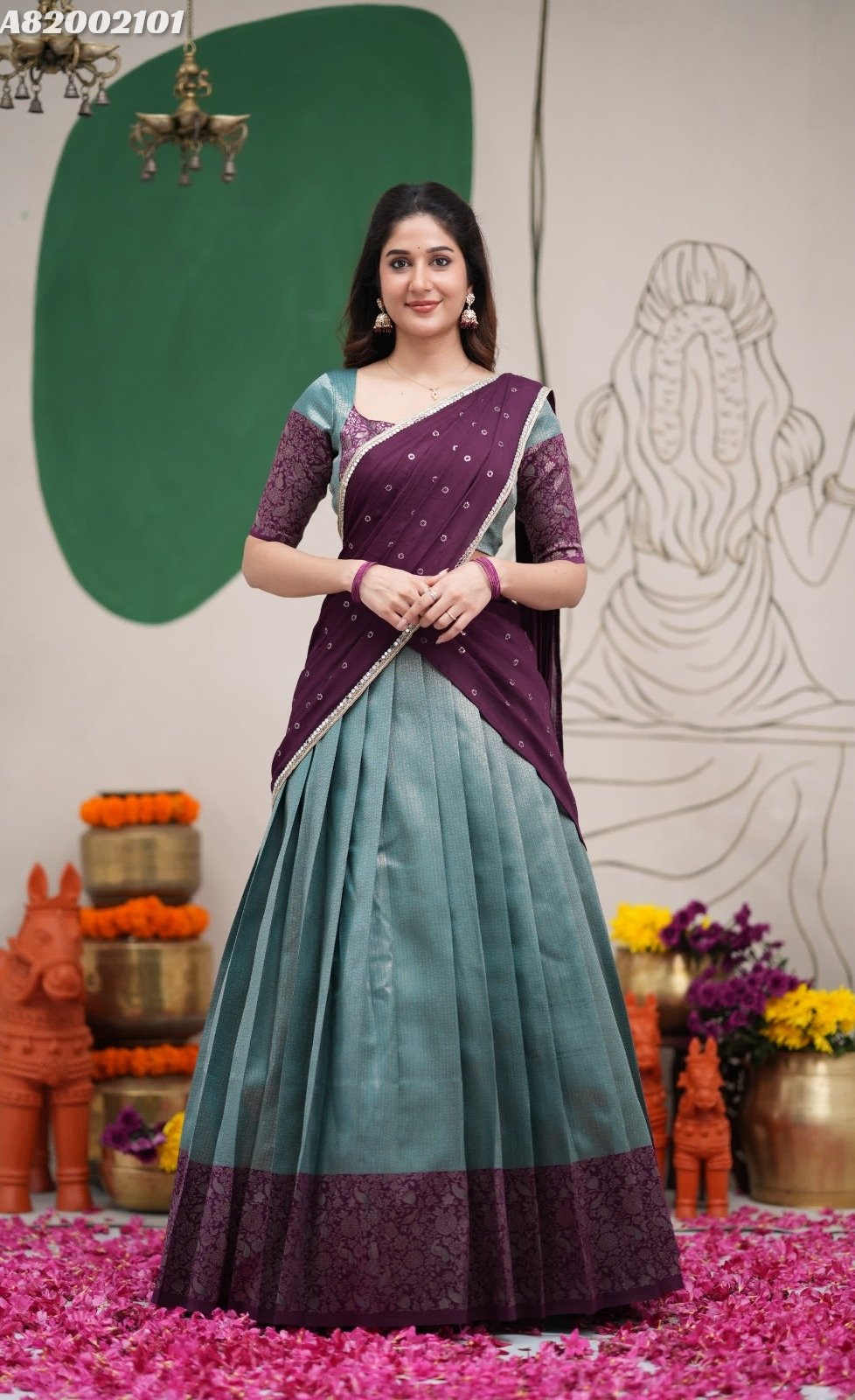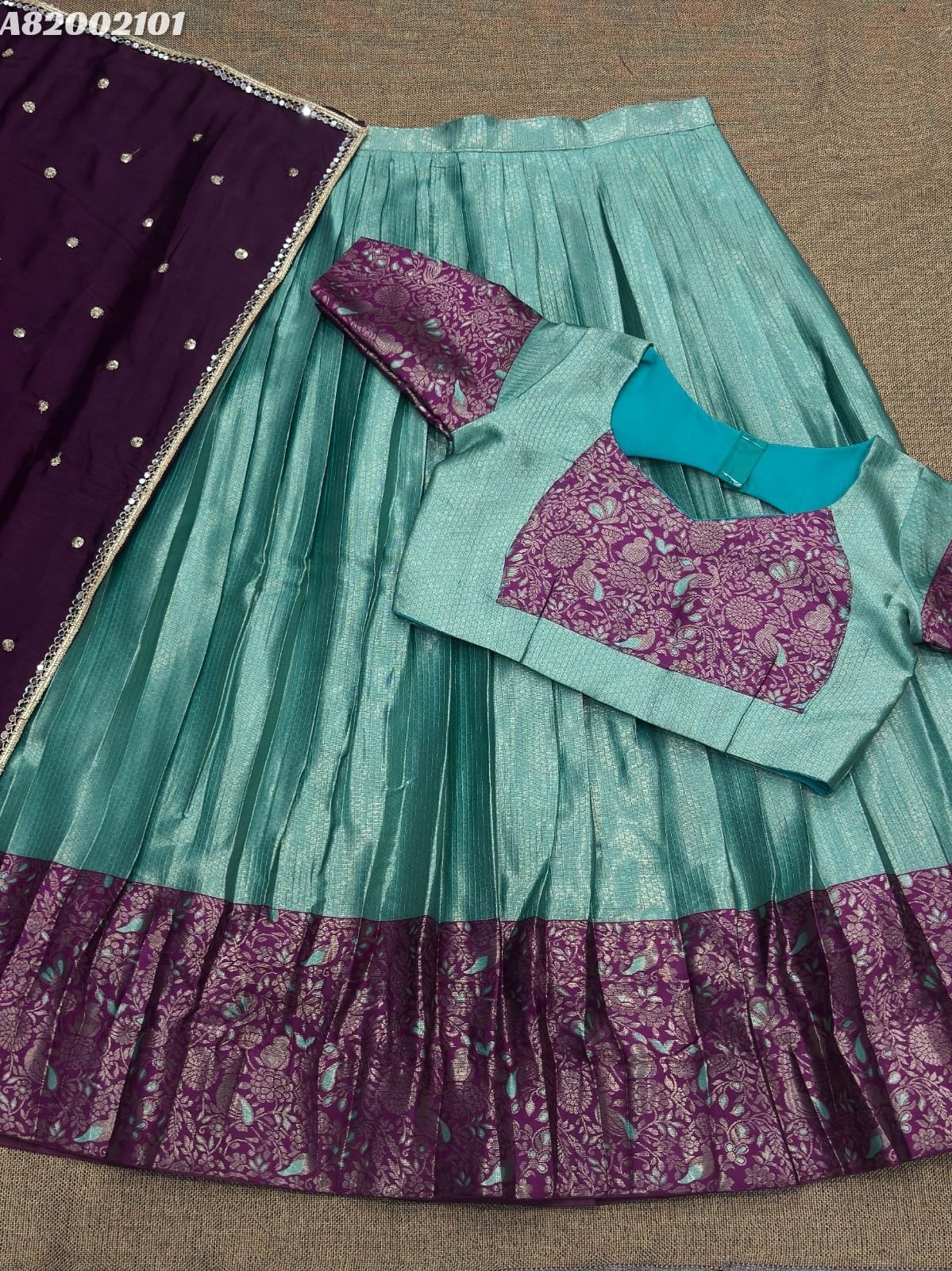 Crafted with love, adorned with heritage : The South-style Kanjivaram silk lehenga is more than just attire; it’s a piece of art that encapsulates the essence of South Indian culture 🪸