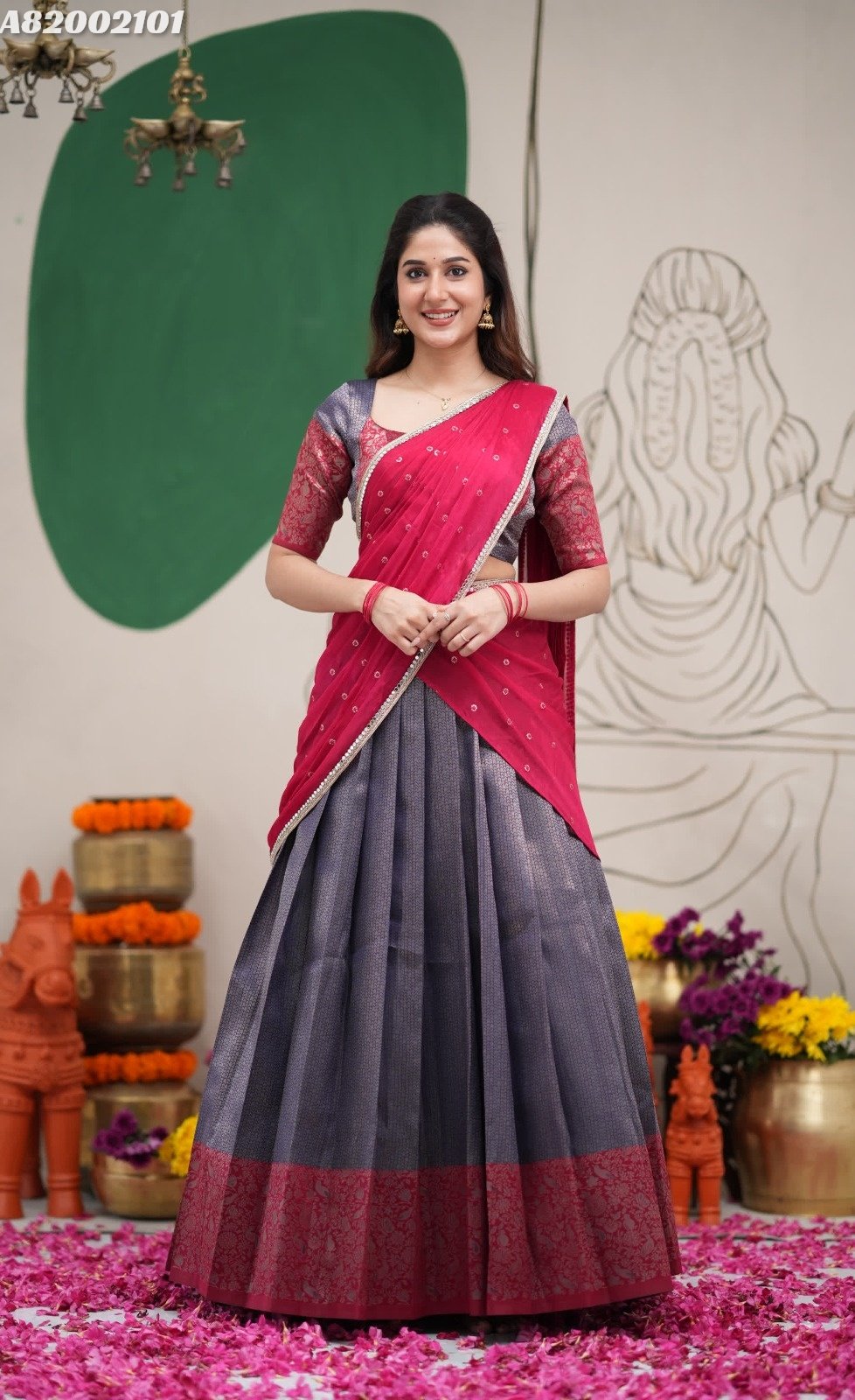Crafted with love, adorned with heritage : The South-style Kanjivaram silk lehenga is more than just attire; it’s a piece of art that encapsulates the essence of South Indian culture 🪸