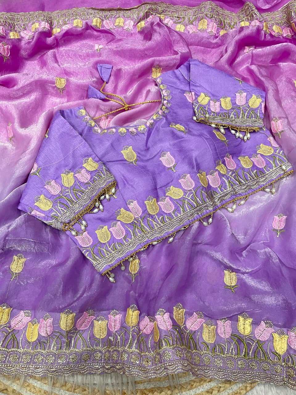 Paired with fully stitched embroidery work blouse with Jharkhand on silk fabrics.