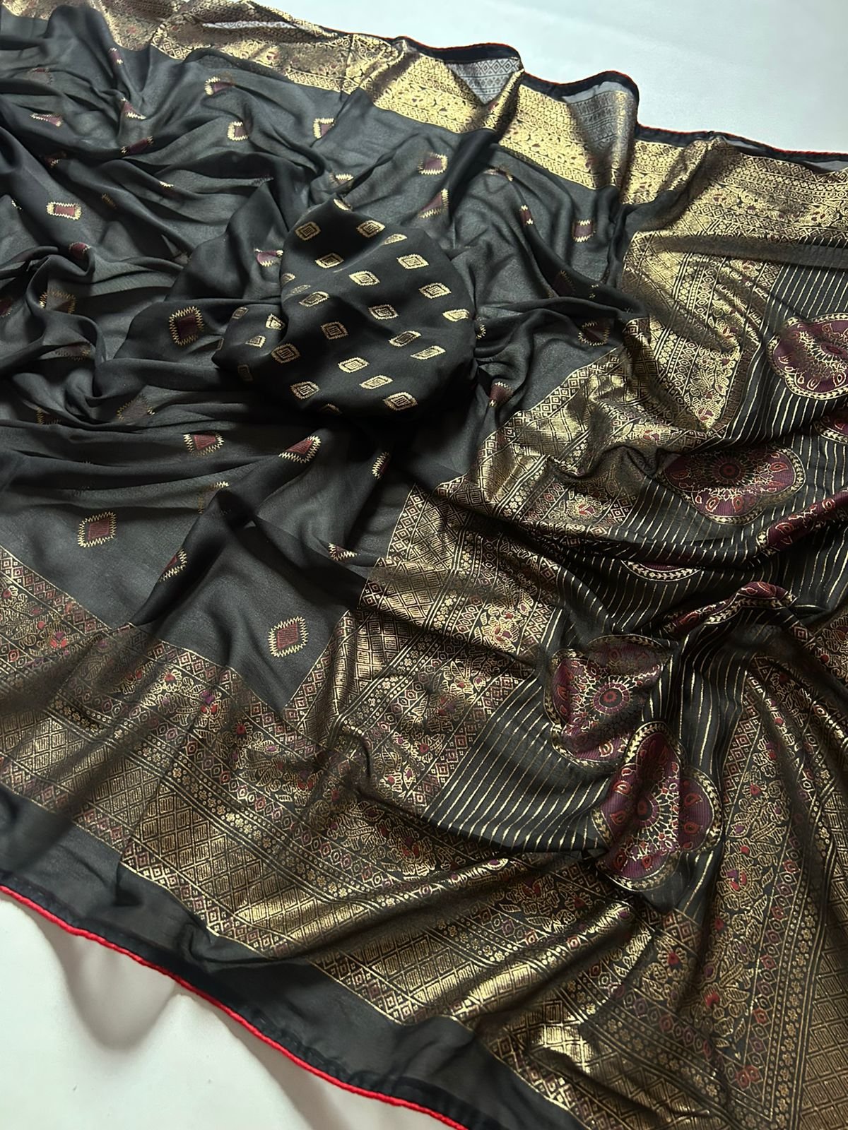 Fabric – Bamber Viscose Georgette ink Foil Print and Foil Printed Blouse