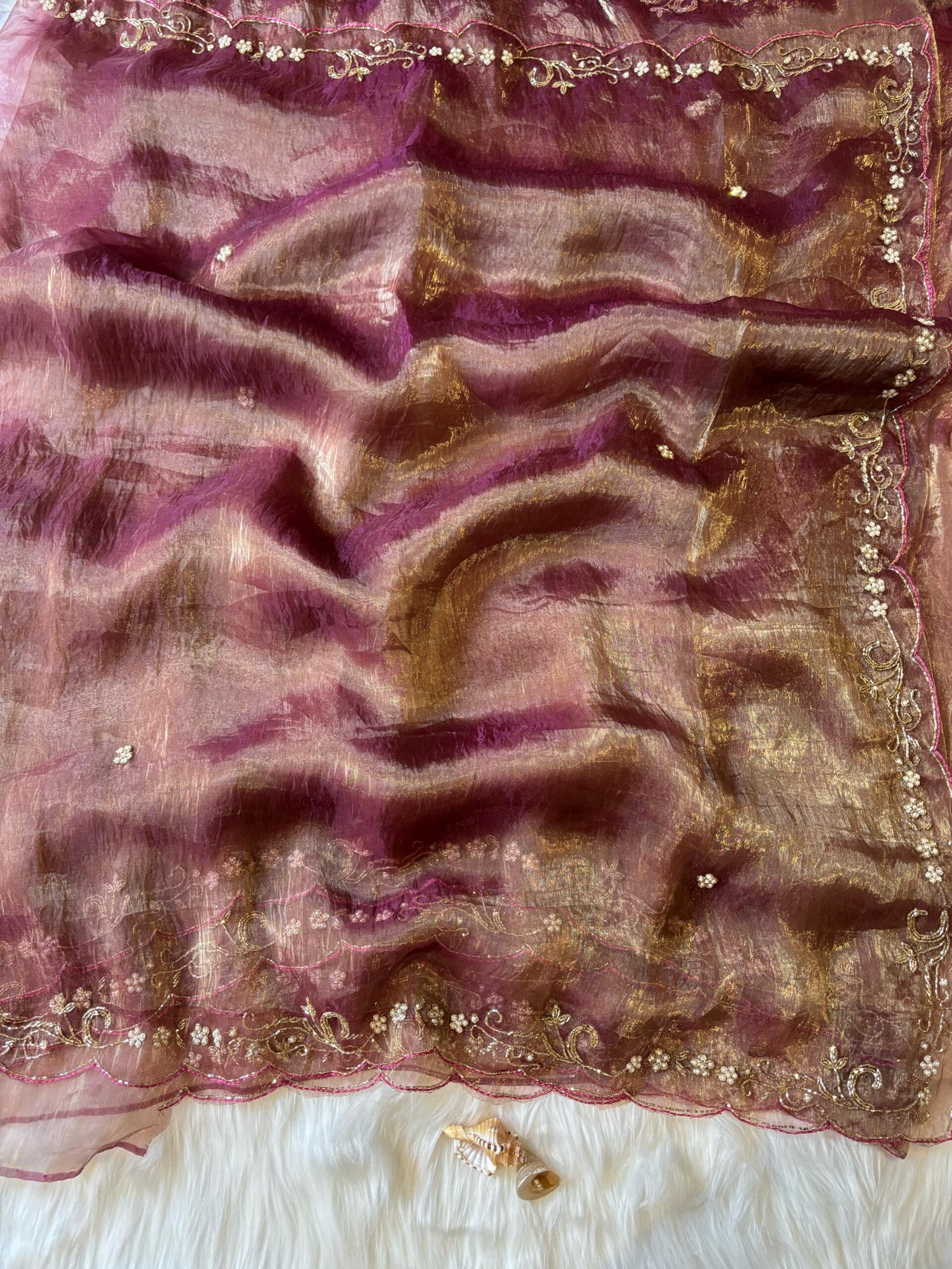 Primium Silk Tissue With Handwork Cutt Dana And Moti Work Sareee(5.40 Mtr)